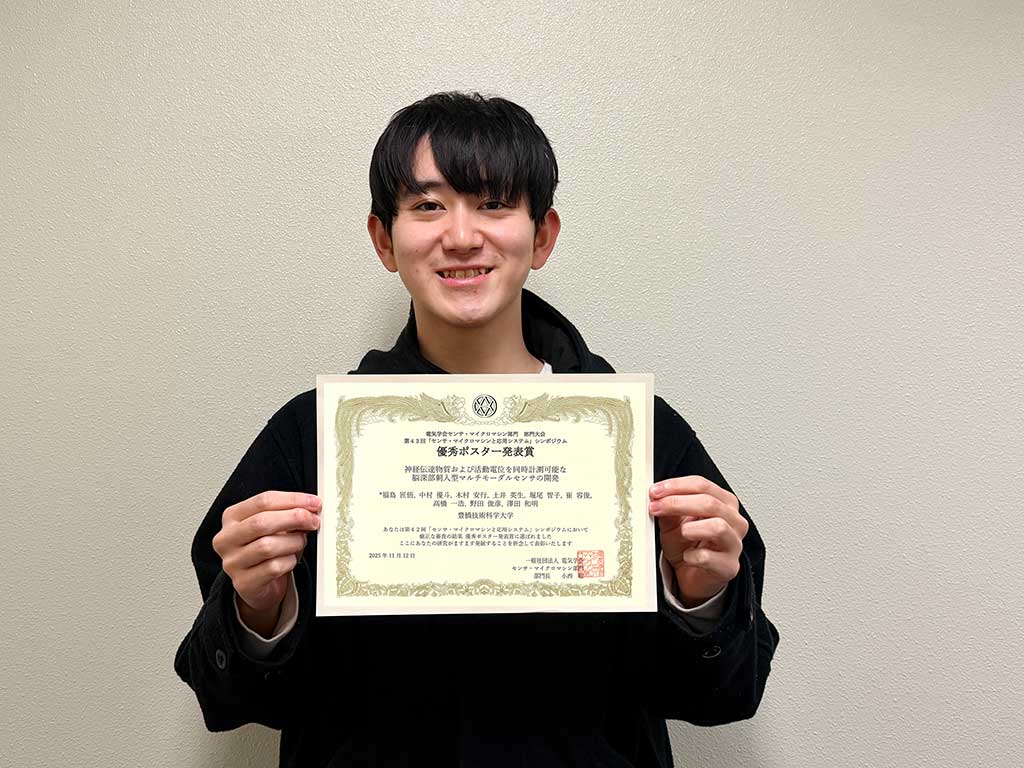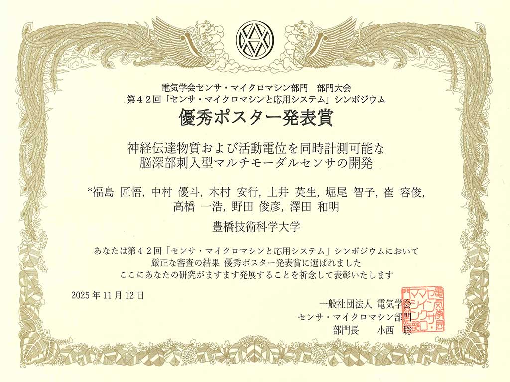 10P4-PS-41,第42回「センサ・マイクロマシンと応用システム」シンポジウム,2025.11.10 - 【優秀ポスター発表賞】*福島 匠悟, 中村 優斗, 木村 安行, 土井 英生, 堀尾 智子, 崔 容俊, 高橋 一浩, 野田 俊彦,澤田 和明
