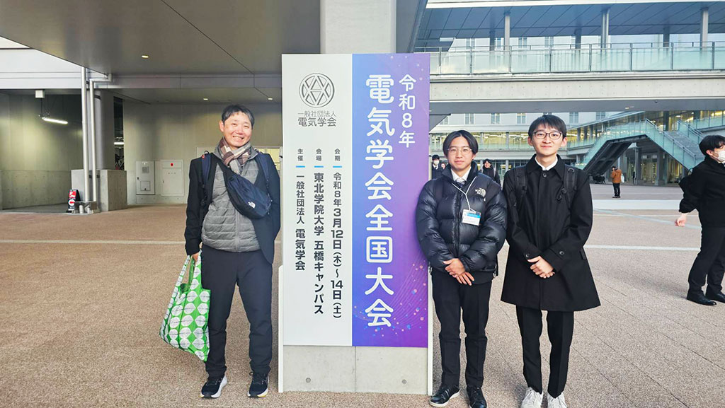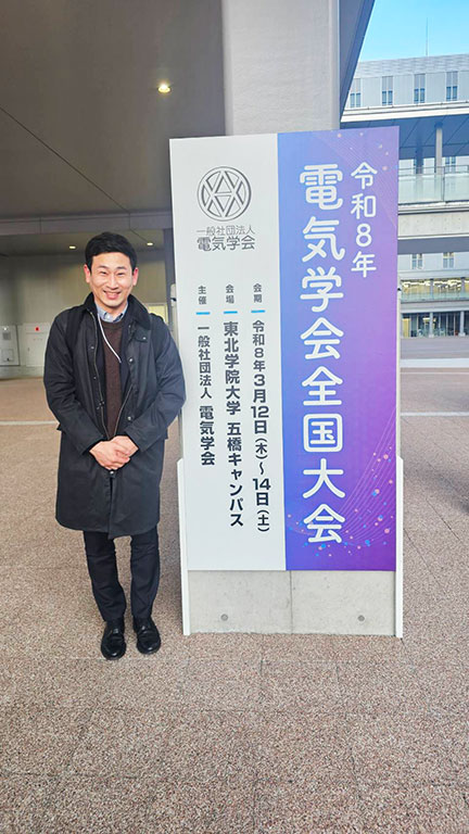 令和8年電気学会全国大会で高専連携プロジェクトで研究している島田さんと志村さんが研究成果発表を行いました。